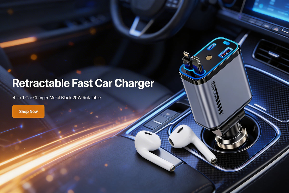 4-in-1 Car Charger Metal Black 20W Rotatable